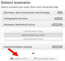 The complete dataset (117 parameters) of the selected scenario can be downloaded as csv by click on the EXPORT CSV-button.